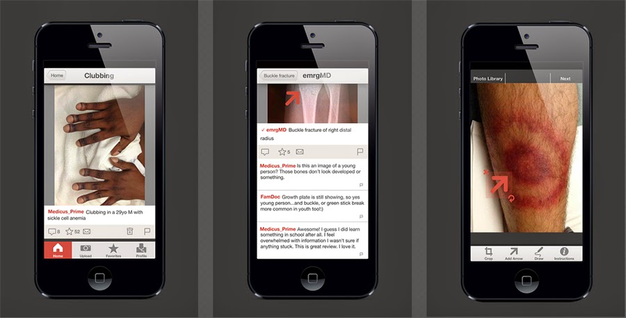 O app no qual os profissionais da saúde compartilham fotos de seus casos, ainda não disponível para o Brasil como aplicativo mobile (Atualização em 08/-2/2015: já estão disponíveis para Android e iOS, mas não permitem upoload de fotos)., está para ser lançado na Europa até o fim do ano.